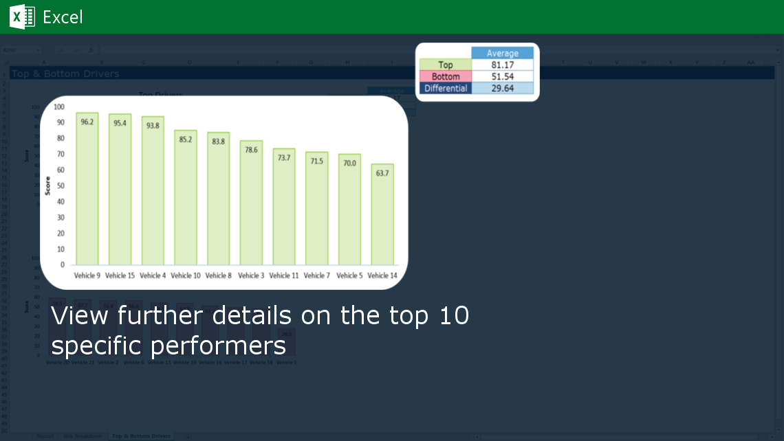 A scorecard gives fleet managers a quick way to assess drivers and dramatically cuts down on review time. One report with one number allows for a quick review. Taking this one step further, fleet managers can also set up the report to be automatically delivered each month.