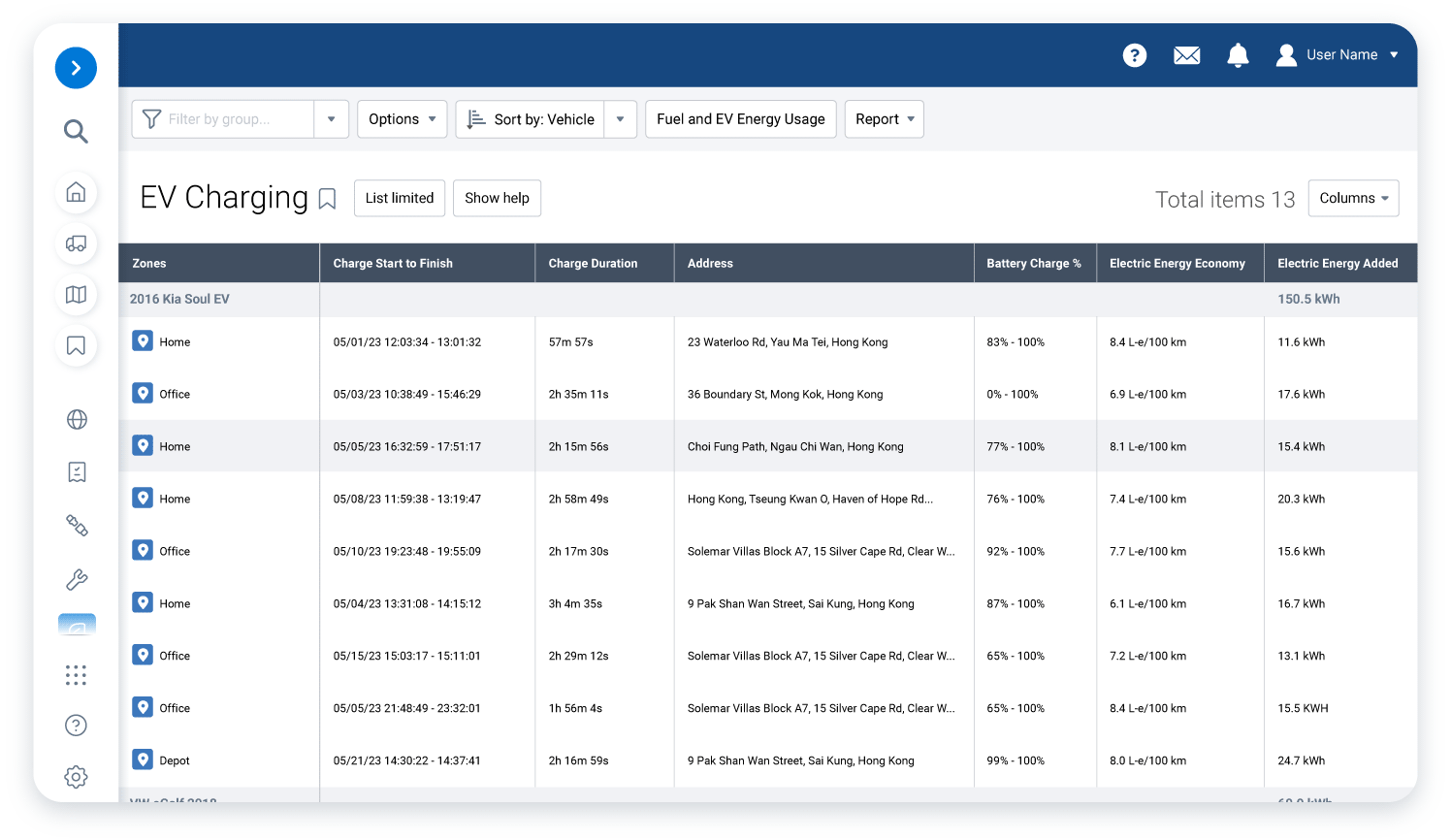 - Calculate charging costs across the fleet or by vehicle, location or driver