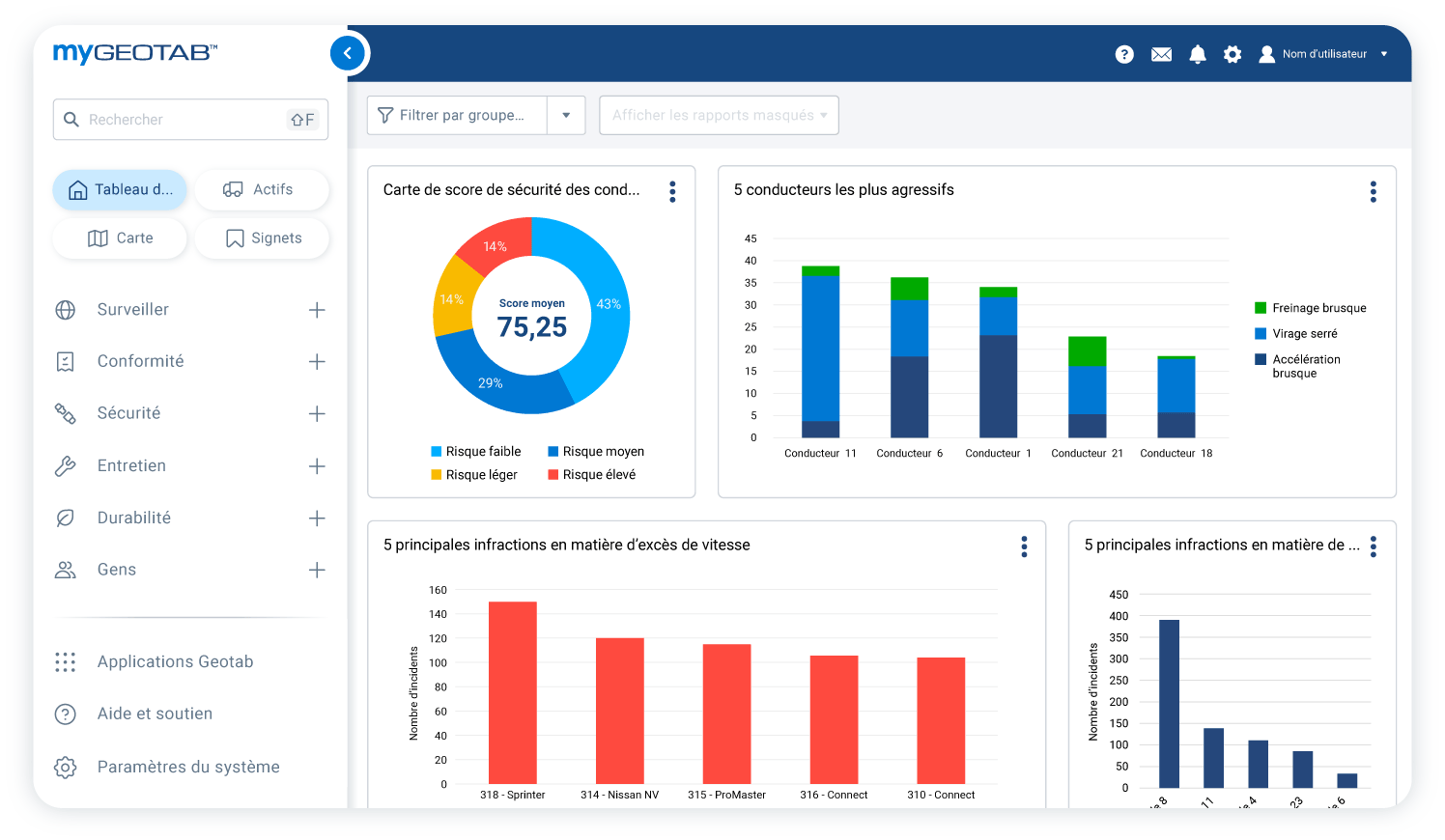 Les boîtiers GO de Geotab collectent les flux de données les plus étendus et les plus complets du secteur, offrant aux gestionnaires de flotte des informations supplémentaires sur leurs véhicules et leurs conducteurs. Collecter plus d’informations, c’est avoir une meilleure visibilité, un meilleur contrôle et de meilleurs résultats commerciaux.