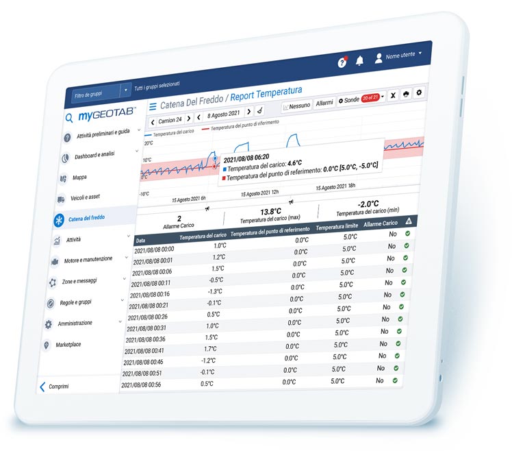 Inoltre, le capacità di reporting offerte dalla piattaforma di Geotab consentono di creare un registro delle temperature per i clienti, contribuendo a rispettare i regolamenti e le normative locali.