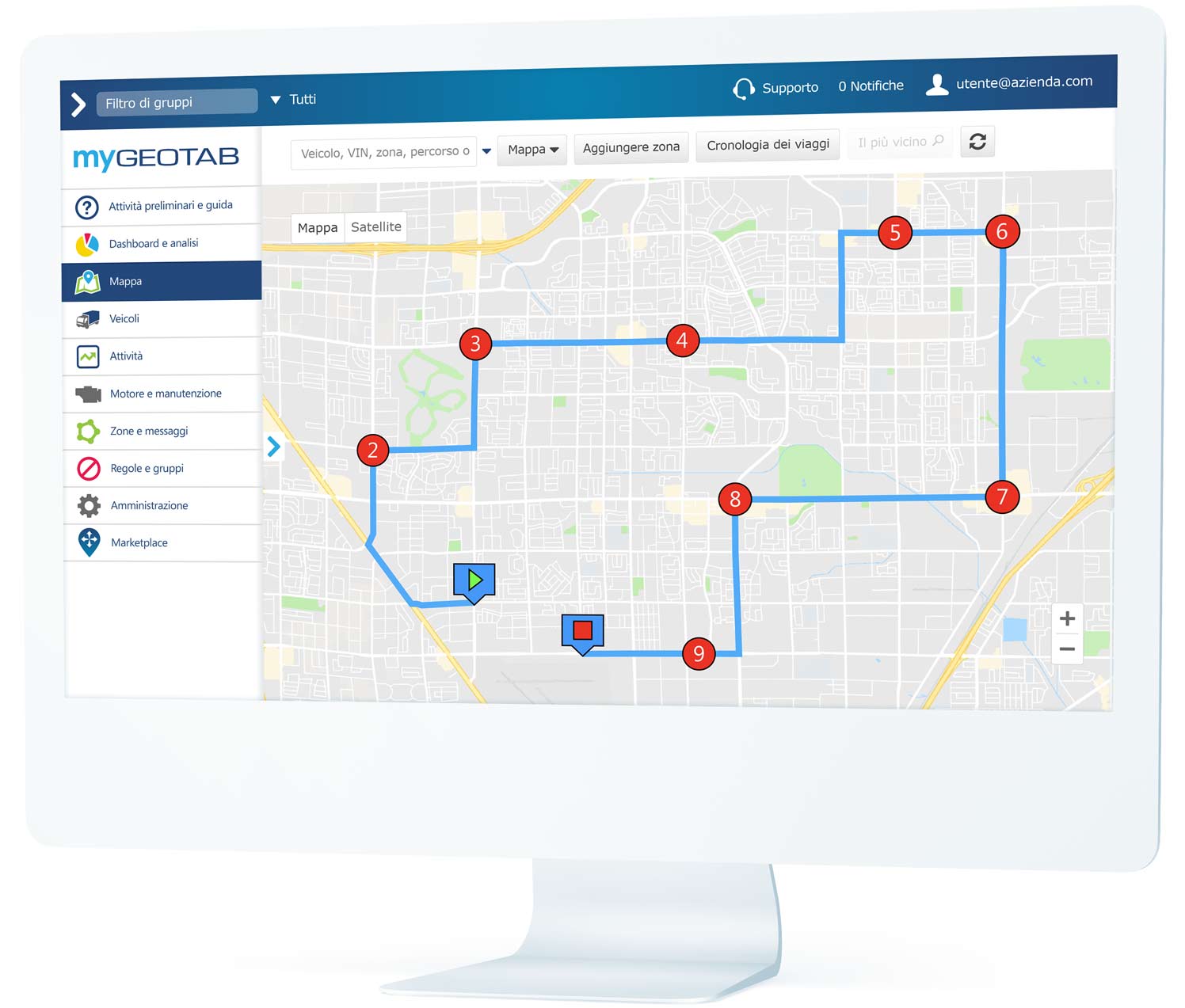 - Eccellenza operativa – Riduci le distanze percorse, ottimizzando la pianificazione delle manutenzioni dei veicoli, per tenerli sempre pronti all’uso.