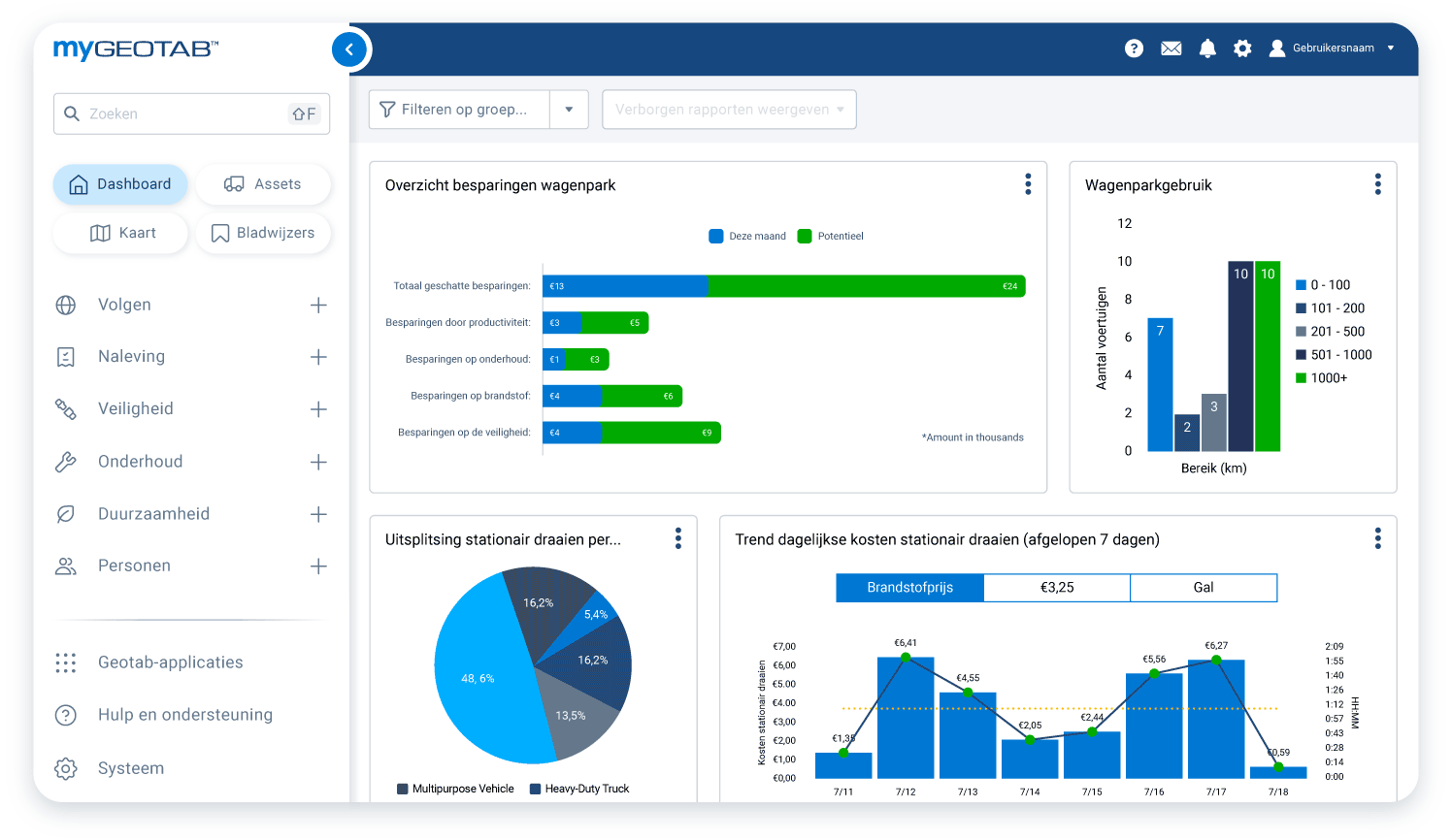Geotab biedt een volledig assortiment duurzaamheidsoplossingen, waaronder: