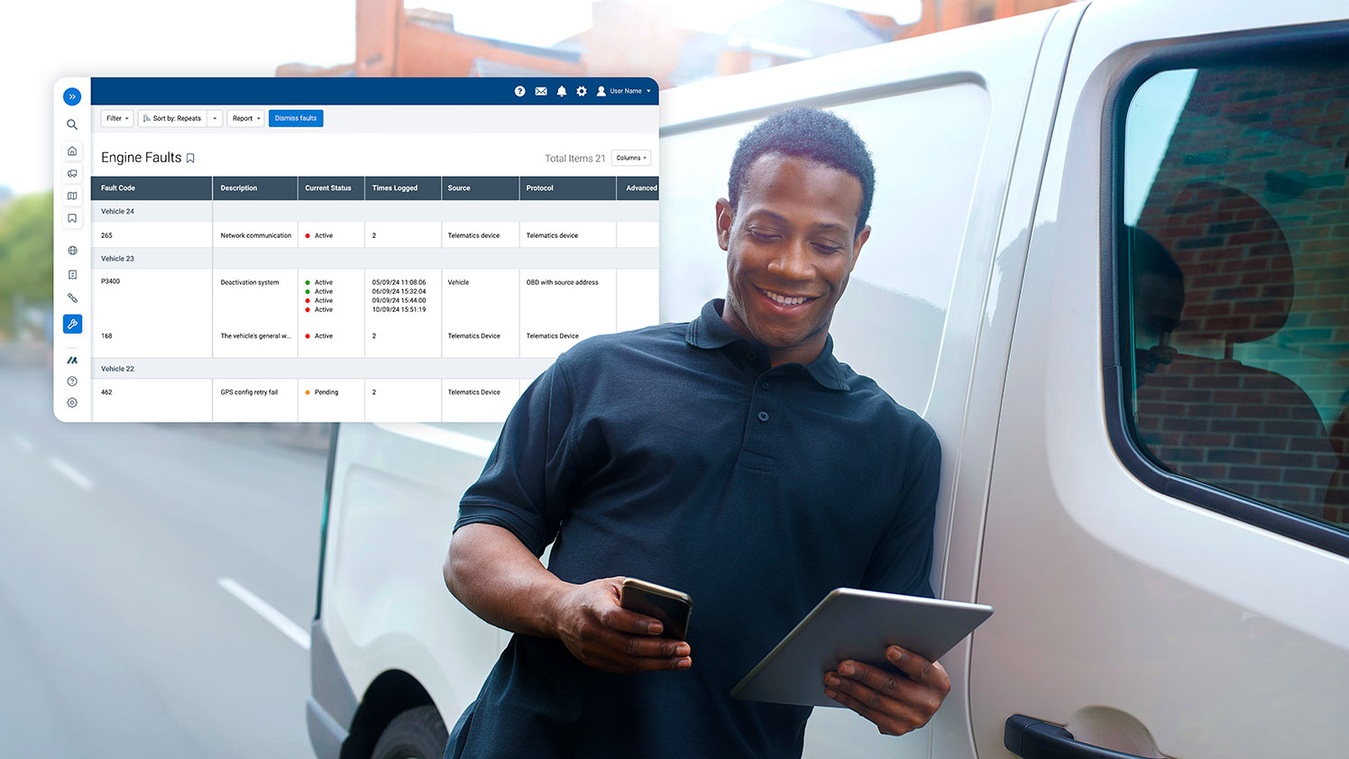 - Engine faults report: Provides a summary of active or historical engine fault codes detected in your vehicles, including severity, frequency and potential impact. This allows you to prioritize repairs and address critical issues promptly.