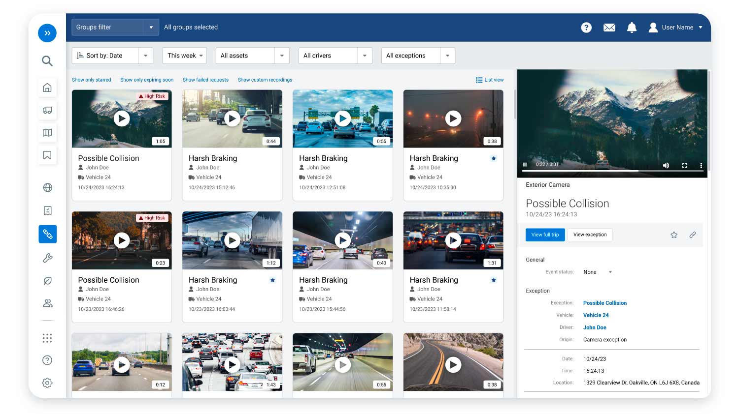 - Intelligent event triggers: Automate the review of continuous video footage and allow for configurable rules to trigger footage analysis based on specific events, such as harsh braking or lane departures, streamlining the identification of incidents and risky behaviors.